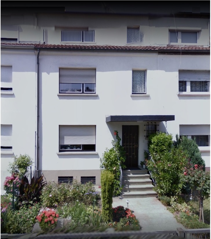 Zwischen dem großen Parkplatz des Hessischen Rundfunks und der Winterbachstr. 5a gibt es einen komfortablen Fußweg, der vom Haupteingang des Rundfunkgebäudes über die Bertramstraße in die Eduard-Beckmann-Anlage führt (s. Foto).